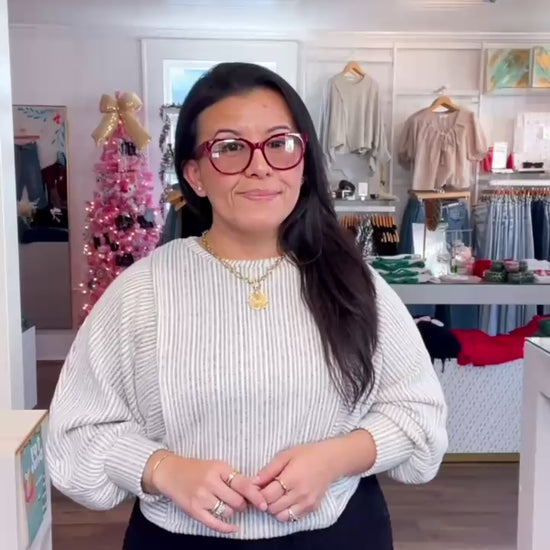 Elevate your style with our Arden Stripe Dolman Knit Top! Featuring a trendy striped design and a comfortable knitted construction, this top is both cute and versatile, perfect for any occasion. Make a statement and add this must-have piece to your wardrobe today!