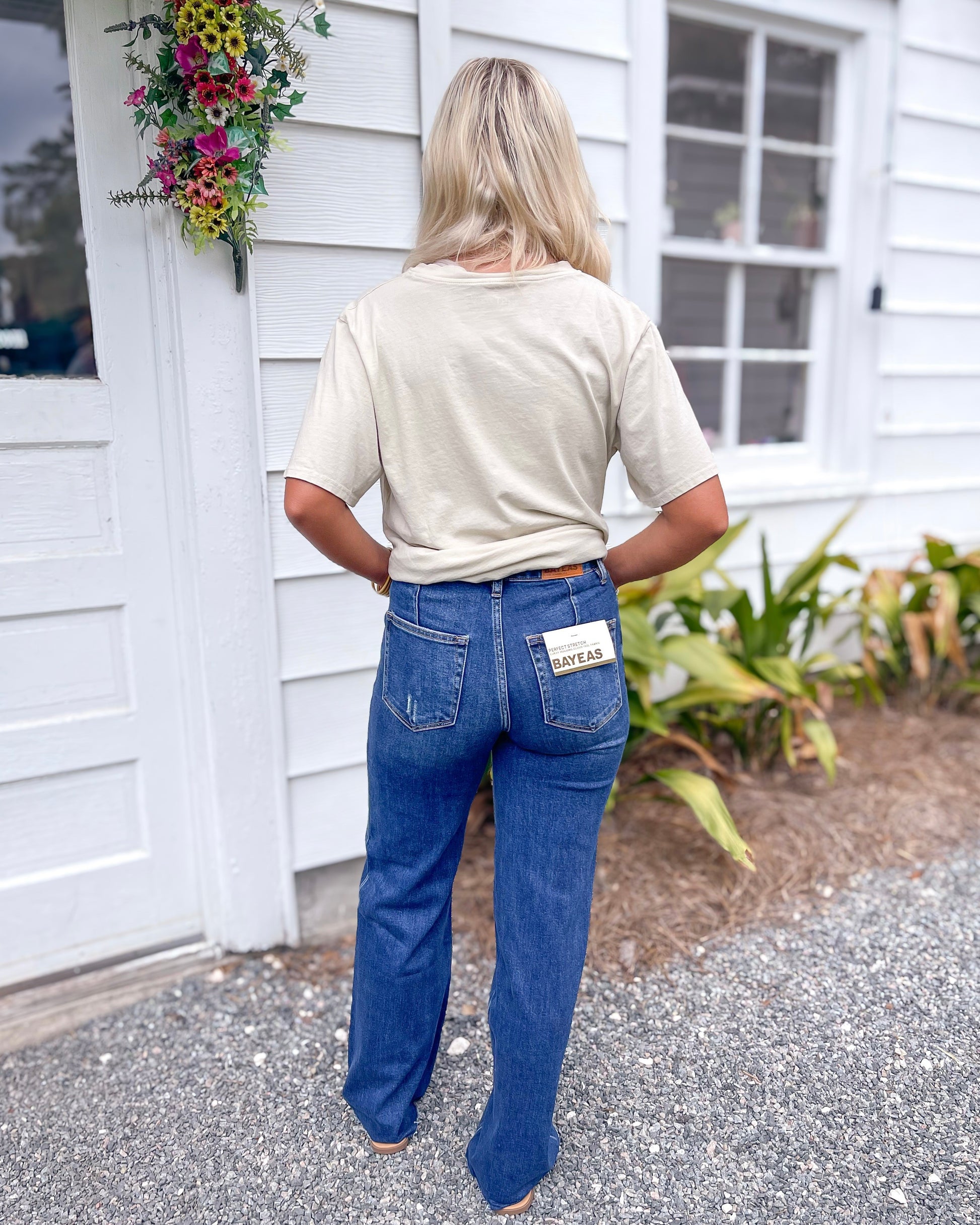 Elevate your denim game with the Bella Super High Rise Wide Leg jeans! Designed for ultimate style and comfort, these jeans feature a wide leg for a flattering fit, a super high rise waistline for a sleek look, and a raw hem for added edge. Available in a dark blue color for effortless versatility.