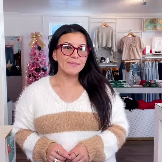 Wrap yourself in the luxurious comfort of the Emberly Fuzzy V Neck Stripe Sweater. With its soft, fuzzy fabric and cozy v neck design, this sweater is the epitome of comfort. Stay warm and stylish all season long in this must-have wardrobe essential.