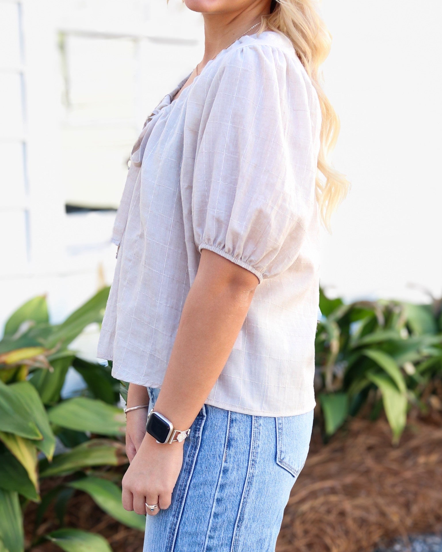 Tie one on and embrace effortless style with this breezy cotton-blend blouse. The adjustable neckline lets you dial in your vibe—whether you're heading to the office, classroom, or just running around town. Lightweight and flowy, it's the kind of piece that plays well with everything in your closet, from your favorite jeans to polished slacks. Comfort meets versatility in one go-to essential.