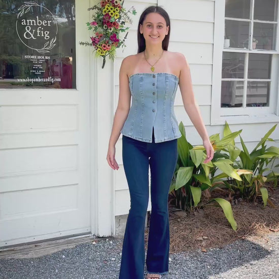 Elevate your style with our Indigo Washed Denim Top! Featuring a strapless design and front button down, this top effortlessly combines comfort and fashion. Perfect for any occasion, this top will add a touch of chic to your wardrobe.