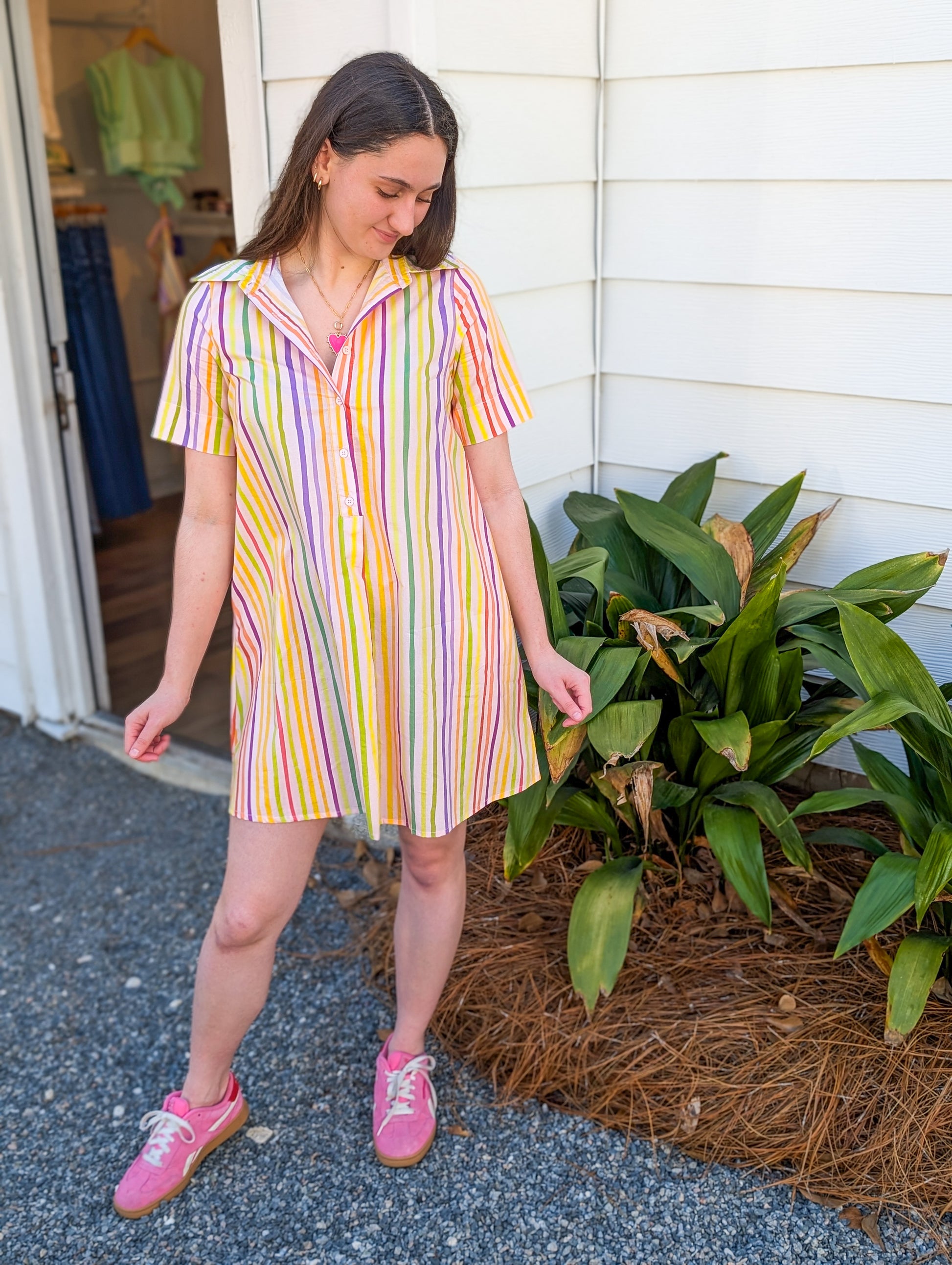 Rainbow Striped Shirt Dress